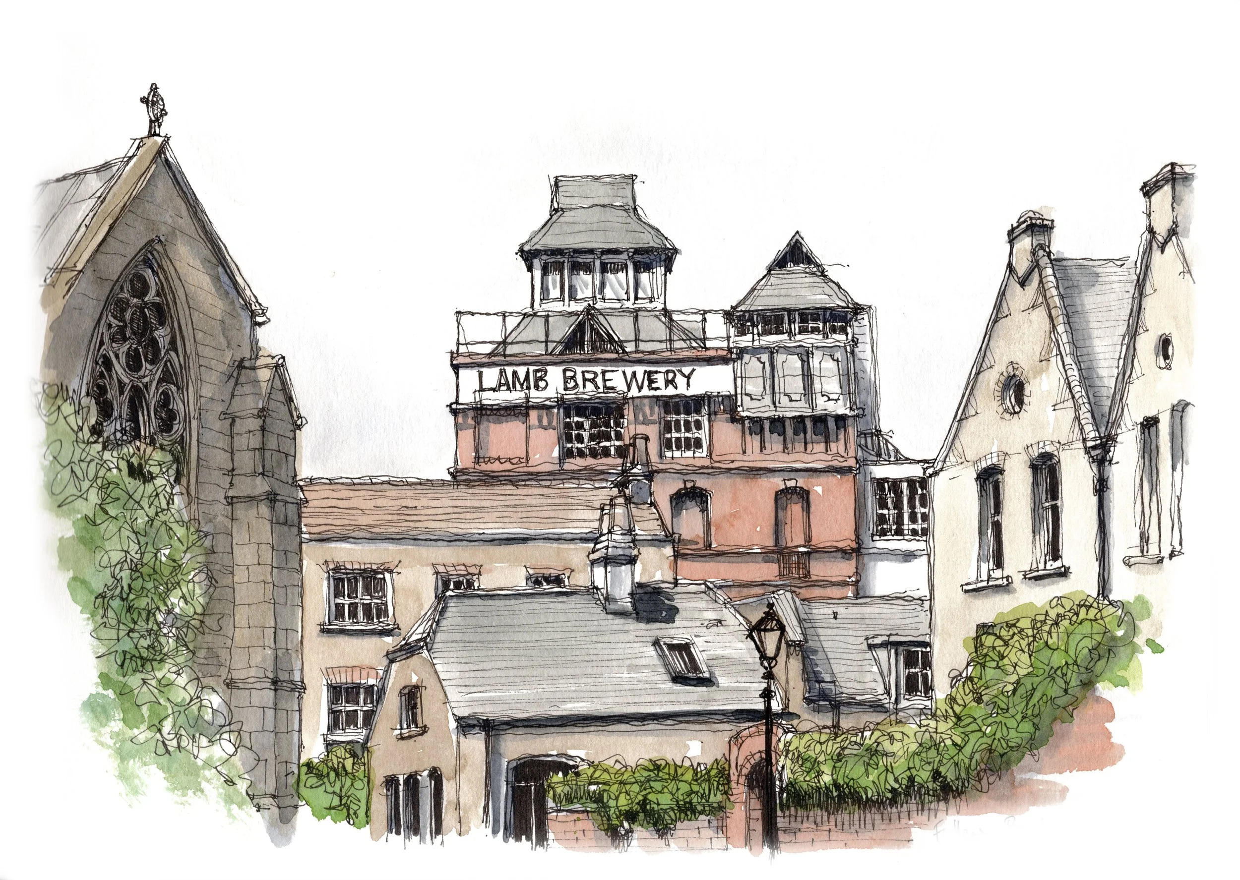 Curiously, this is named the Griffin Brewery, yet the tower has “LAMB BREWERY” emblazoned on it.
